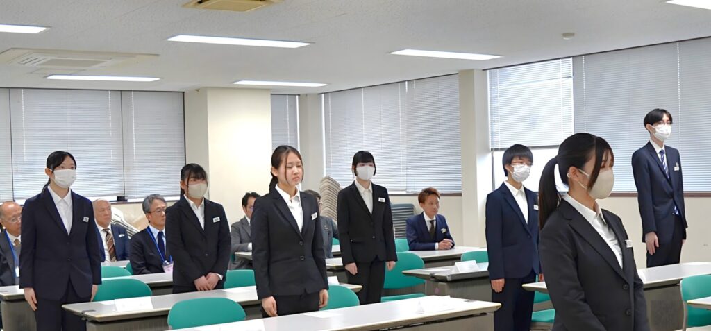 辞令が社長から直接交付され、それぞれの配属先でのスタートを迎えます。